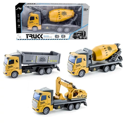 Kisfiad számára keresed a tökéletes ajándékot? Nem kell tovább keresned, hiszen ezzel a különleges munkagéppel lepheted meg őt, ráadásul még azt is kiválaszthatod hogy melyik változatot szeretnéd számára. A munkagépek között egy billencses szállító kamion, egy betonkeverő és egy fülkés kotró gép is megtalálható, ezek közül pedig biztosan megtalálod azt, aminek biztosan örülne. A munkagépek részletes kialakítást kaptak, kiváló minőségű anyagokból, így sokáig lehetnek majd használatban, ráadásul forgó kerekeiknek köszönhetően az egész ház játéktérré alakulhat.