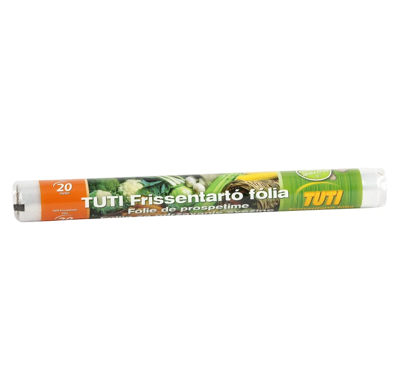 Erős, víztisztán átlátszó, kiváló minőség. Jól feszíthető és nagyszerűen tapad. Ideális ételek, élelmiszerek aromazáró lefedésére, csomagolására, tárolására, frissentartására, fagyasztására.