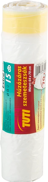 Tuti húzózáras szemeteszsák 70L 15 db-os kiszerelésben 64x70cm