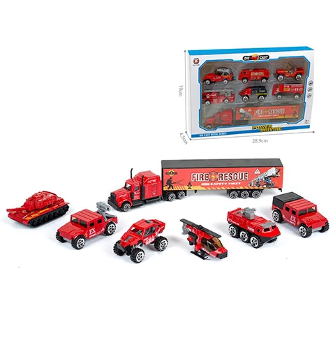 Egy összesen 7db különböző tűzoltó járgányból álló szettel egészítheted ki gyermeked játékbirodalmát, amely egy hatalmas tűzoltó kamiont is tartalmaz. A kamion könnyedén tudja szállítani az akcióhoz szükséges eszközöket, legyen szó akár lakás tűzről, autóbalesetről vagy erdőtűzről egyaránt. A szett további tűzoltó tankot és terepjárót is tartalmaz amelyek leginkább katonai környezetben használatosak. Egészítsd ki gyermeked járműveit tűzpiros fényezéssel rendelkező tűzoltó járgányokkal.