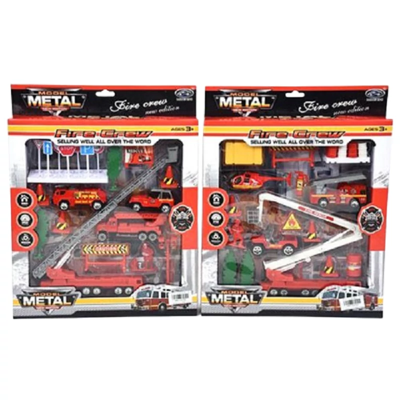 A szettekben lévő járművek a tűzoltósághoz hűen piros színt kaptak, és megtalálhatunk köztük helikoptert, teherautókat, és kisebb terepjárókat is, különböző jelzőtáblákat és bójákat is, melyekkel különböző szituációkat is eljátszhat.