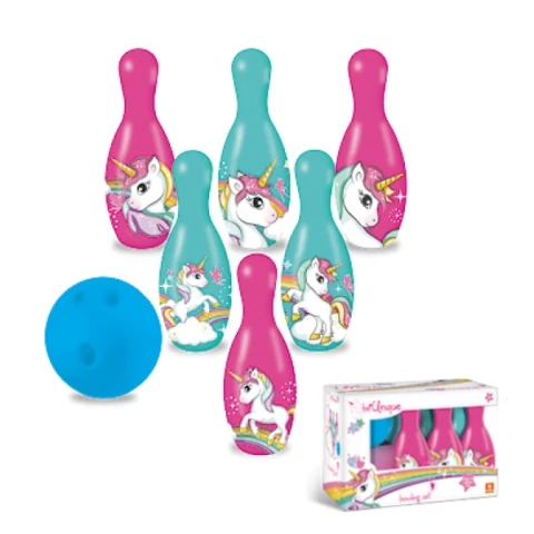 A teke, vagy más néven bowling egy remek ügyességi játék kicsiknek és nagyoknak egyaránt. A játék célja az, hogy a tekegolyó használatával minél kevesebb gurításból ledöntsük a lehető legtöbb bábút. Ha elég ügyesek vagyunk, akkor egy gurításból akár az összes bábút is képesek vagyunk eldönteni. A gyakorlást érdemes először közelebbről kezdeni, majd egyre növelni a távolságot. A tekebábuk mindegyike csodaszép unikornisos mintával van dekorálva, mely biztosan elnyeri majd a kicsik tetszését.