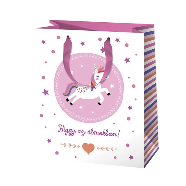 Unikornisos normál ajándéktáska 11x15x6cm "Higgy az álmokban!"