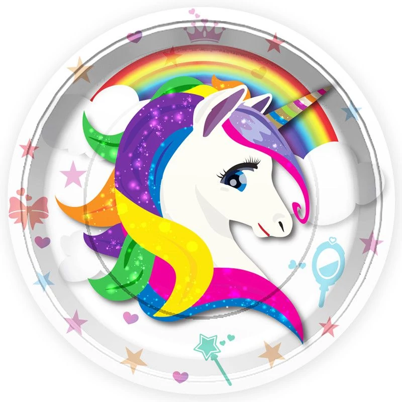 Unikornisos papír tányér, 23 cm, 8 db/cs.