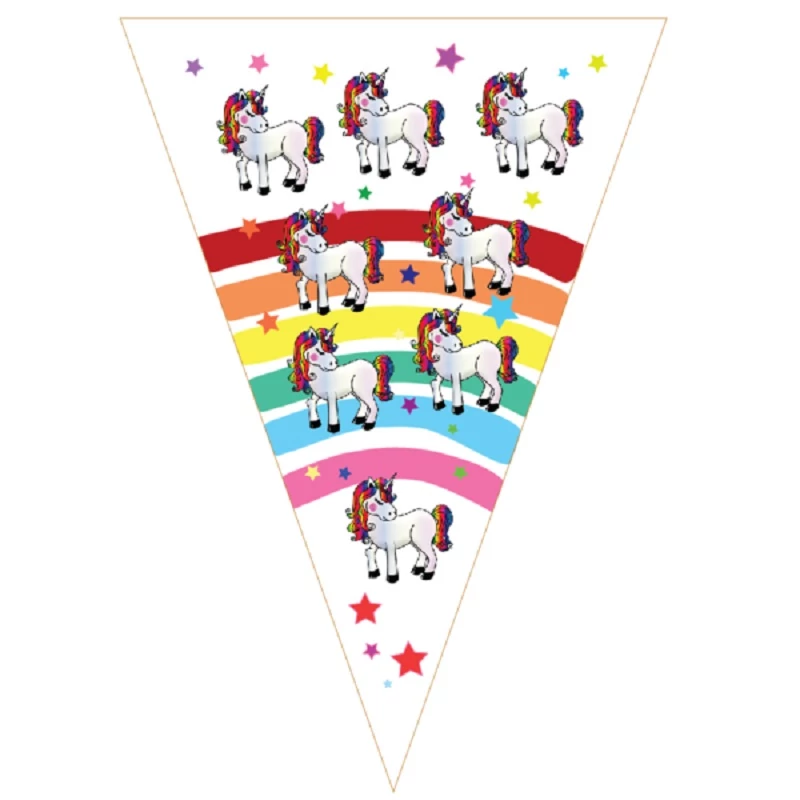 Minden egyes zászlót neked kell felfűzni a zászlón található bevágásokon keresztül a csomagban található 2,5 m hosszú szatén szalagra. Viszont ennek köszönhetően tetszés szerint tudod méretezni. A csomag tartalma: 10 db zászló, egy 2,5 m hosszú szatén szalag.