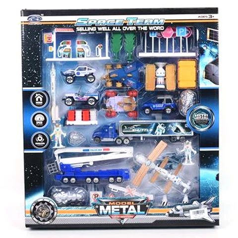 A szettben különböző műhold, űrhajó, és űrállomás is megtalálható, valamint meteorit darabok, űrhajósok és még egy benzinkút is, ahol a járműveket lehet tankolni.