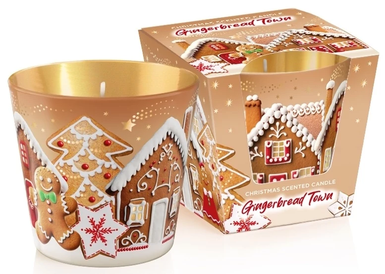 Üveges illatgyertya mézeskalács város 115g