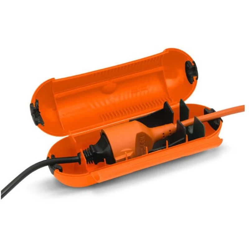 Kerti munkák során gyakran van szükségünk elektoromos szerszámokra, gépekre, melyekhez rendszerint hosszabbítókat használunk. Ezek csatlakozásának megóvására szolgál ez a védőtok, legyen szó nedvességről vagy szennyeződésről. A védőtok használata javasolt kisgyermekes családoknak is, hiszen megakadályozza, hogy a gyermek hozzáférjen az elektromos hálózat csatlakozóihoz.