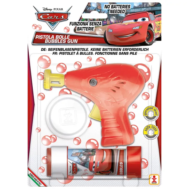A szett tartalmaz mindent, amire a buborékos mókához szükség lehet: egy kézi működtetésű, elemek nélküli pisztolyt, egy flakon buborékfújó folyadékot, valamint egy tálkát a folyadék kiöntéséhez. A használata egyszerű és biztonságos – csak mártsd bele a fúvókát a folyadékba, húzd meg a ravaszt, és máris repülnek a buborékok, szinte olyan gyorsan, mint McQueen a versenypályán!