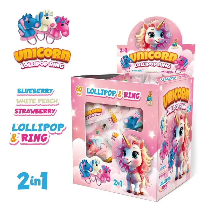 Vidas Unicorn lollipop gyűrűvel 60x12g