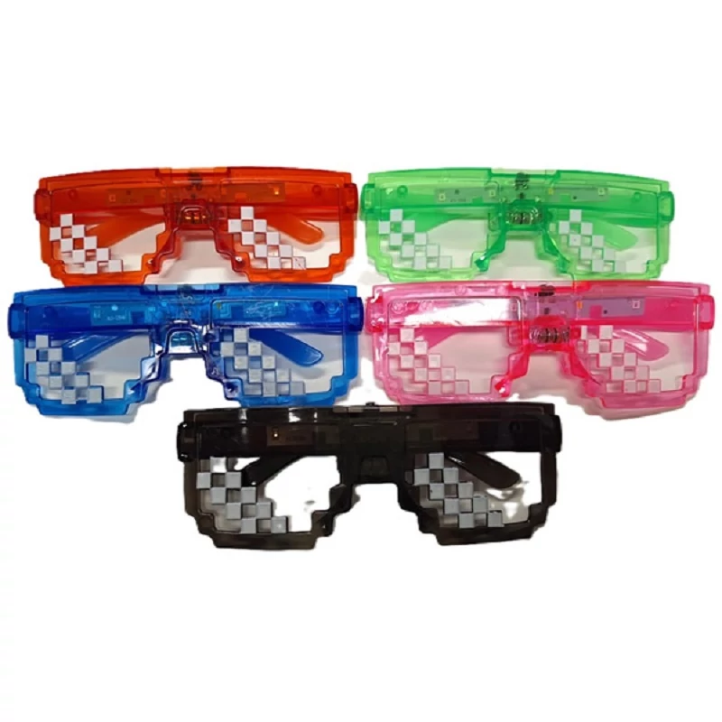 Ezek a pixel mintás, LED világítással ellátott partyszemüvegek népszerűek gamer bulikhoz és szilveszteri rendezvényekre.