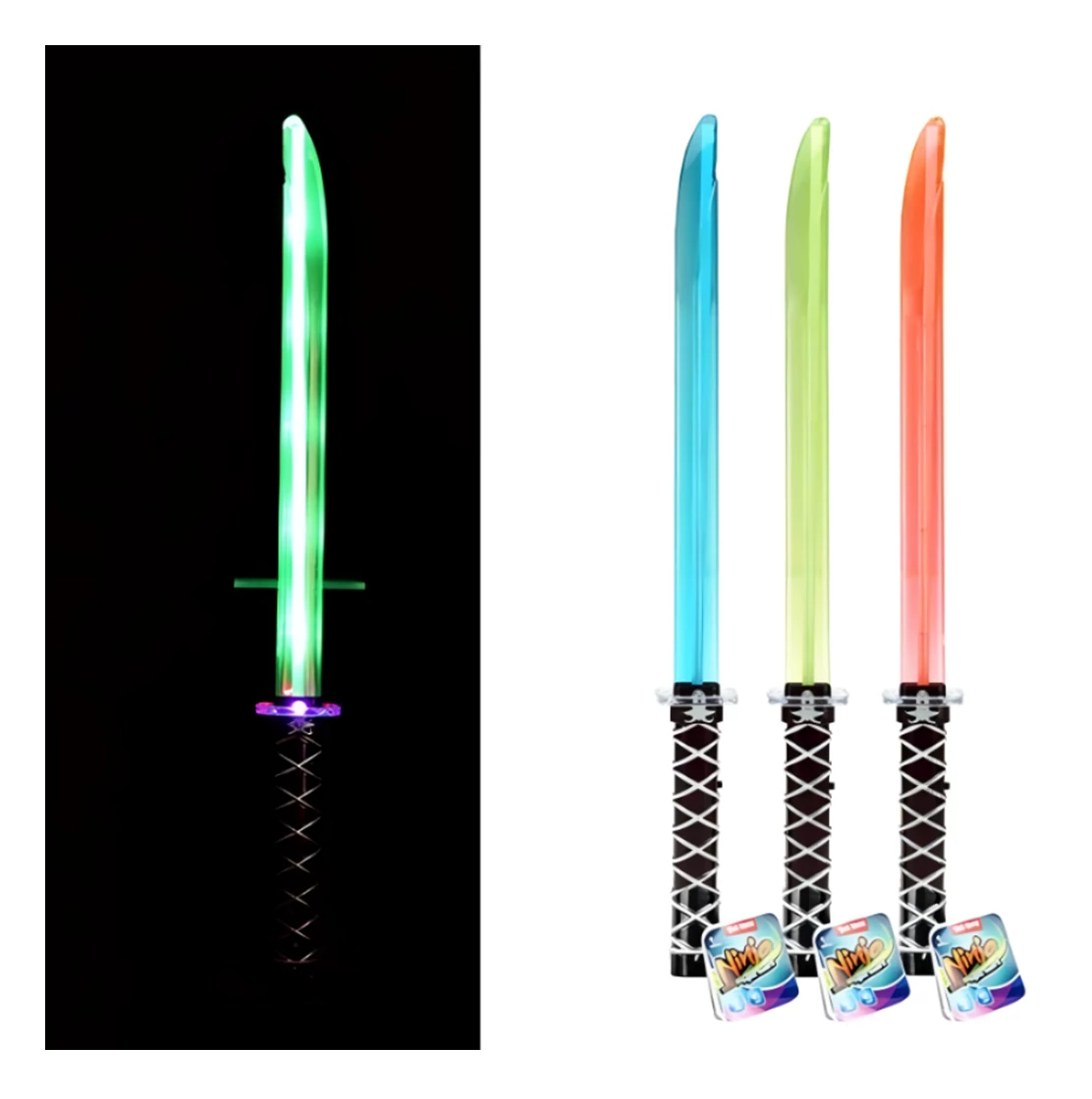 Ez a Világítós szamuráj kard tökéletes választás minden kis harcos számára, aki egy igazán különleges játékfegyvert szeretne. A kard különlegessége, hogy bekapcsolva lenyűgöző fényekkel világít, így sötétben is látványos harci élményt nyújt. A kard háromféle színváltozatban érhető el: kék, zöld és piros, azonban a rendelésnél a színválasztás meglepetés marad, hiszen véletlenszerűen kerül kiválasztásra, így minden csomag kibontása egy különleges izgalommal jár!