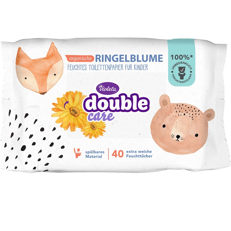 A Violeta Kids 40 darabos nedves toalettpapírt a család legérzékenyebb bőrű tagjainak ajánljuk. Biológiailag lebomló anyagból készült, lehúzható a toaletten. Bőrgyógyászatilag tesztelt, pH semleges termék. Tutti-frutti illatának köszönhetően, a család legkisebbjei is szeretik.