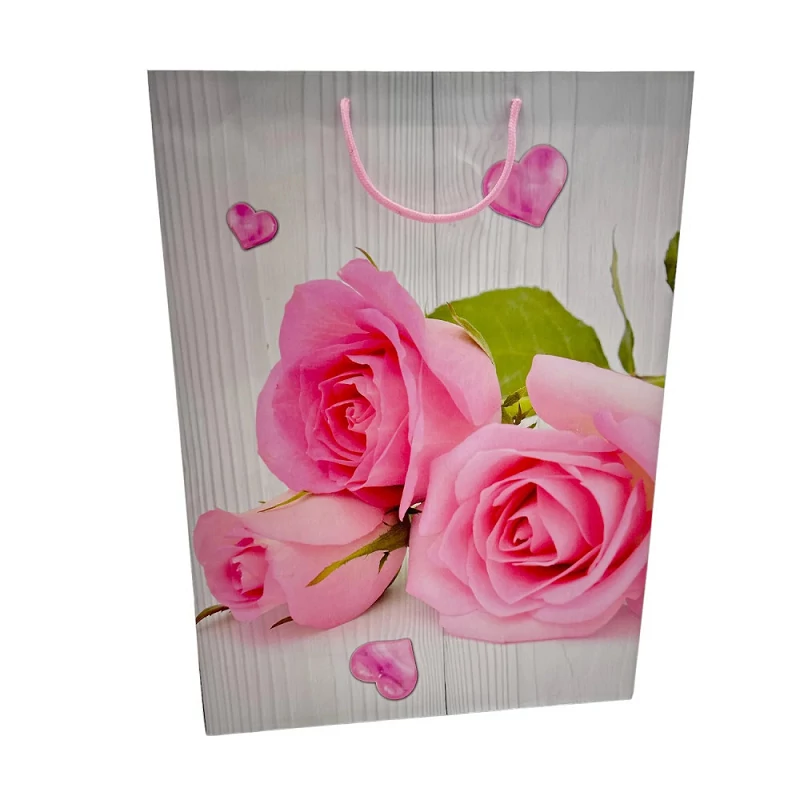 Virágos papír ajándéktasak többféle változatban 32x44x11cm 70640