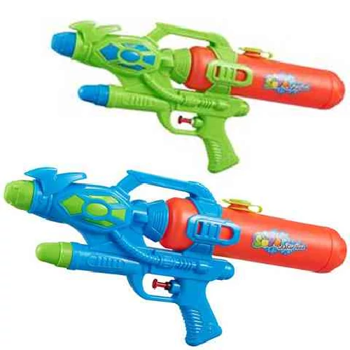 A vízipisztolyokkal vívott csaták a legszuperebb játékok közé tartoznak a nyaralások alkalmával. Ez a szuper fegyver egy igazán komoly előnyökhöz juttatja a használóját köszönhetően a tartályos kialakításának, amely miatt sokkal ritkábban kell újratölteni, mit a többi fegyvert. Az elsütő billentyűvel okosan tudjuk adagolni a vizet, ami még gazdaságosabbá és pontosabbá teszi a fegyverünket. A gyerekek ezzel a különleges kialakítású fegyverrel indulhatnak csatába és az ellenfélnek esélye sem lesz ellened.