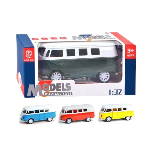 A Volkswagen T1 egy legendás autó, mely gyakorlatilagh megteremtette a modern kisbuszok világát. Ez a fém autómodell csodás mása az igazi kocsinak. Az autó 1/32-es méretarányú, fém és műanyag alkatrészekből van összeszerelve. Hátrahúzható motorral van ellátva, ajtajai pedig nyithatóak. Játékra vagy modellgyűjteménybe egyaránt tökéletesen alkalmas. A feltüntetett ár egy változatra vonatkozik!