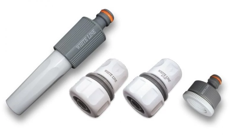 A Bradas White Line WL-5500-34 locsoló készlet öt olyan elemet tartalmaz, melynek segítségével teljesen fel tudja szerelni a kertitömlőjét. A készlet tartalmaz egy sugárcsövet, két gyorscsatlakozót és egy csap csatlakozót, méretcsökkentővel. A készlet alapvető eszközöket tartalmaz, mely a kertitömlő segítségével számos professzionális funkciót nyer. A készlet sugárcső vagy szórófej egyenes fúvókája állítható, és lehetővé teszi a vízsugár diszperziójának beállítását az adott igényekhez. A készlet tartalmaz két darab 3/4" gyorscsatlakozót, melynek a segítségével a kerticsaphoz és a locsolópisztolyhoz lehet csatlakozni. Az egyik gyorscsatlakozó AquaStop kivitel, mely a locsolóeszköz leválasztása után automatikusan megállítja a vízátfolyást, ezzel időt és energiát megtakarítva. A mellékelt csapcsatlakozó segítségével könnyedén tudunk kapcsolatot létesíteni a kerticsap és a tömlő között. A kerticsaphoz való csatlakozás átmérője 1", de a menetcsökkentő betét alkalmazásával 3/4"-os csatlakoztatást is lehetővé tesz.