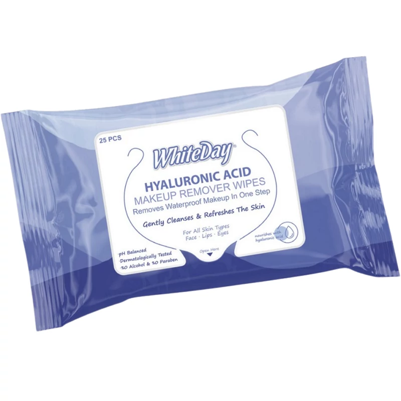 Whiteday sminklemosó törlőkendő hyaluron sasvval 25db-os kiszerelésben