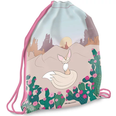 Tornaórára vagy a sportoláshoz használt váltóruhát és cipőt is belehelyezhetik ebbe a Wonderful Desert mintázatú tornazsákba, amit aztán a zsinórokkal összehúzhatnak egyetlen mozdulattal. A megtöltött sportzsákot a vállukra akasztva vagy a hátukra véve is hordhatják, összezárva egészen biztosan semmi nem fog kihullani belőle szállítás közben sem. A tornazsák egy sivatagi rókával és kaktuszokkal dekorált, dekoratív kiegészítő.