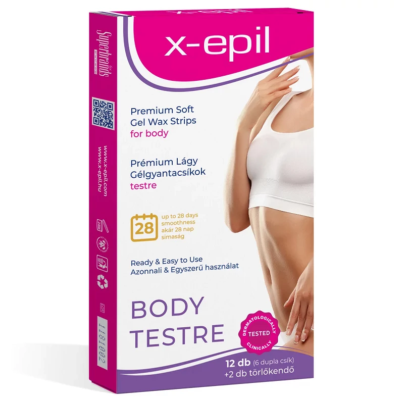 X-Epil gélgyantacsík testre. Hatékony, gyors megoldás a selymesen puha bőrért, kompromisszumok nélkül. Speciális gél állagának köszönhetően még egyszerűbbé és gyorsabbá teszi a szőrtelenítést a test bármely részén. Bárhol, bármikor használható, mert a csíkokat nem szükséges melegíteni.