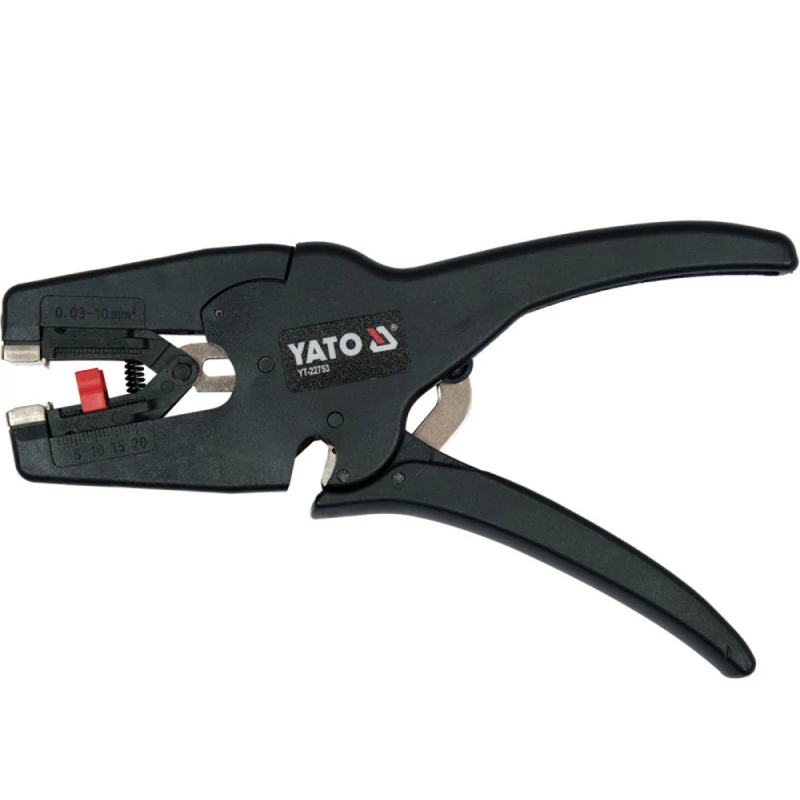 A YT-22753 automatikus szigetelőfogó szinte teljes egészében műanyagból készült, ezáltal mindössze 140 gramm a súlya. Ennek könnyedségét, gyorsaságát és precizitását a szigetelés lehúzásában mind a hobbi barkácsolók, mind a profi villanyszerelők nagyra értékelik..li>mechanizmus a gyors és automatikus szigetelés lehúzásához mind lapos, mind kerek vezetékekről, 0.03-tól 10.0 mm-ig.sup>2a pengematerial olajban edzett rugóacél 65Mn.állítható huzalhúzó hosszvezetéket tud vágniYT-22753 fogó alkalmazási táblázata: Használati figyelmeztetések: Figyelem! Mindig használjon személyes védőfelszerelést a munka során.