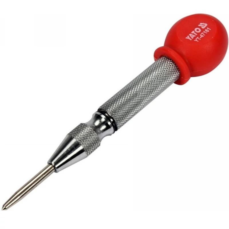 A csapokat gyors, pontos pontok jelölésére tervezték a munkadarab felületén, mint például fa, fém vagy műanyag. Leggyakrabban fúrás előtti pont jelölésére használják. A pontozás megkönnyíti a fúrást azzal, hogy csökkenti a fúrócsúszás kedvezőtlen hatását a anyag felületén, az úgynevezett fúrócsúszást. A jelölést úgy hozzák létre, hogy a csap éles végét az anyaghoz ütik. A hagyományos pontozási módszer kalapács használatát igényli. A bemutatott automatikus pontozók az anyagot jelölik azzal, hogy erős belső rugót használnak, amely egy edzett acél tűt mozgat. Ezáltal megszüntetik a nehéz kalapács cipelésének szükségességét. A csap nem igényel rugófeszítést - ez automatikusan történik. Azonnal a tű anyaghoz nyomása és ütése után megismételhetjük a műveletet, jelölve a következő pontot. A csapnak állítható ütőerője van, amely optimális beállítást tesz lehetővé a jelölt anyag keménységéhez. Használati utasítás: Illessze a csapot éles végével a jelölt anyaghoz. Nyomja meg erősen a kezével - a tű örökre beveri a pontot az anyagba. Azonnal a tű anyaghoz nyomása és ütése után megismételheti a műveletet, jelölve egy másik pontot. Használati figyelmeztetések: A kéziszerszámok használata veszélyes lehet! Mindig használjon személyes védőfelszerelést munka közben. Csak megfelelő és sérülésmentes szerszámokat használjon. Válassza ki a szerszám típusát és méretét a tervezett alkalmazás szerint. Ne terhelje túl a szerszámokat. Tartsa a szerszámokat távol a gyermekektől. Gondosan használja a szerszámokat.