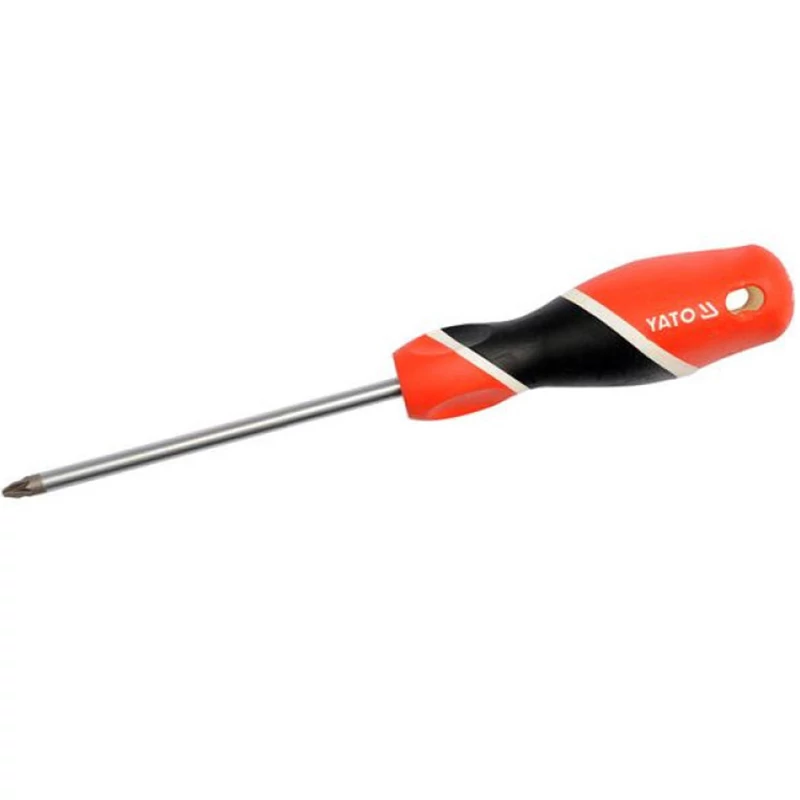 Phillips csavarhúzó cilinder alakú nyél, S2 acélból készült, körülbelül 58 HRC keménységre edzve nyél felülete szatén bevonatú a munka vége edzett és homokfúvott (ez erősíti a pengének stabilitását) a fogantyú a megfelelően kiválasztott, különböző keménységű műanyagokból készült