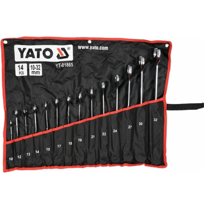 YATO YT-01865 típusú, 10 - 32mm-es méretű csavarkulcs készlet.Magas minőségű acélból készültek. Az ergonomikus csavaros forma megkönnyíti a munkát és nagy kényelmet biztosít, különösen a nehezen kilazítható csavarok esetén. Fogantyú A 90°-ban elcsavarodott fogantyú tökéletesen illeszkedik a kézbe, így a csavarok meghúzásakor nagyobb nyomást gyakorol a kulcsra, kevesebb erőfeszítéssel a felhasználó részéről a fej 15°-ban döntve van tartós acélból készült, polírozott felület. Kulcsok méretei: 10, 12, 13, 14, 15, 17, 18, 19, 21, 22, 24, 27, 30, 32.