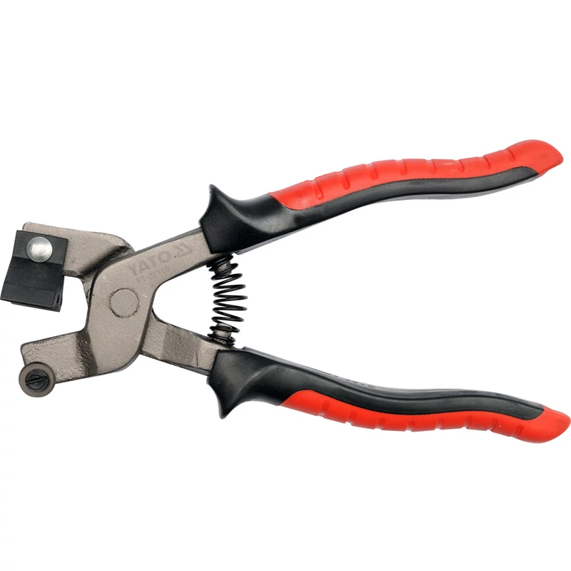 Csempevágó és -törő csipesz. A törő lába speciális műanyagból készült - így nem károsítja a mázat a lágy csempék törésekor. A fogó hidegalakított. Vágóelem - tárcsakés készült YG-6X karbidból. Kényelmes, ergonomikus formájú hüvelyekkel ellátva, amelyek nagy nyomást és nyitórugót tesznek lehetővé.