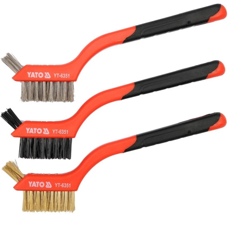 Acél, nylon és sárgaréz drótból készült kefék. A kefe profilja növeli a tisztítási hatékonyságot.Felhasználási cél:Kefék a kemény felületek rozsda, festék, por és egyéb könnyű szennyeződések tisztításához. Használati figyelmeztetések: Figyelem! Mindig használjon személyes védőfelszerelést a munka során.