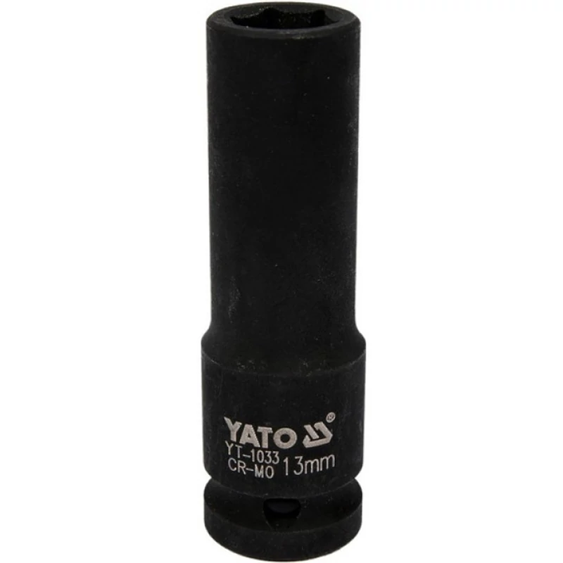 YATO Dugókulcs gépi 1/2″ 13 mm hosszú – 13 mm-es, 1/2″ meghajtású hosszú gépi dugókulcs, ütvecsavarozóval való használatra. Hosszított kivitele megkönnyíti a mélyebben elhelyezkedő csavarok elérését, masszív és terhelésálló kialakítással.