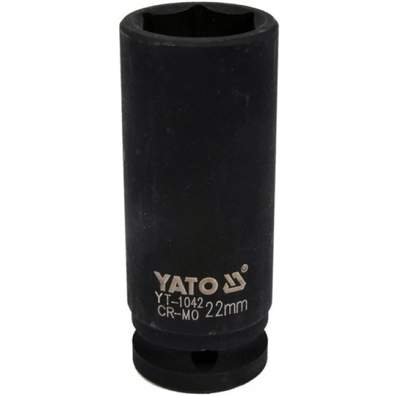YATO Dugókulcs gépi 1/2″ 22 mm hosszú – 22 mm-es, 1/2″ meghajtású hosszú gépi dugókulcs, ütvecsavarozóval történő használatra. Hosszított kivitele segíti a mélyebben elhelyezkedő csavarok elérését, masszív és terhelésálló kialakítással.