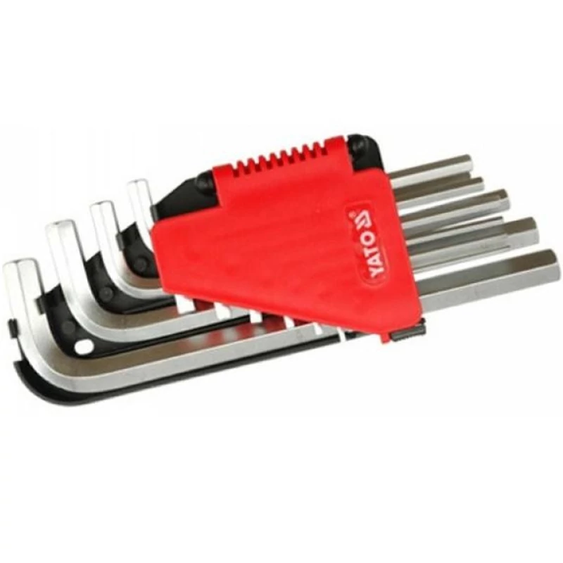 Allen hatszög kulcsok 2-12 mm, 10 db. professzionális hatszög kulcs készlet a készlet praktikus és kézreálló műanyag akasztóban van csomagolva, ami megkönnyíti a megfelelő méretű kulcs megtalálását a kulcsok kiváló minőségű króm-vanádium acélból CrV 6150 készültek, amelyeket erősség és rugalmasság jellemzi a hatszög kulcsok keménysége 52-55 HRC A kulcsok méretei: (hosszúság x szélesség) 2 mm - 81 x 16 mm 2.5 mm - 88 x 18 mm 3 mm - 95 x 21 mm 4 mm - 109 x 23 mm 5 mm - 121 x 28 mm 6 mm - 135 x 31 mm 7 mm - 145 x 33 mm 8 mm - 157 x 35 mm 10 mm - 174 x 39 mm 12 mm - 180 x 42 mm Használati figyelmeztetések: Figyelem! Munka közben mindig használjon személyes védőfelszerelést.