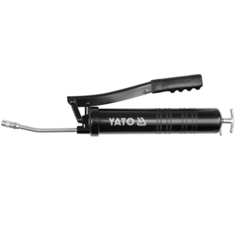 A YATO kenőanyag olyan eszköz, amely nagy nyomás alatt ken mechanikai elemeket, mint például tengelyeket, tüskéket, csapágyakat, ízületeket. A készülék egy 400 ml-es acélhengert tartalmaz, amelyben egy kézi dugattyú működik. A dugattyú minőségi gumi tömítéssel rendelkezik, amely ellenáll a kenőanyagok és olajok hosszú távú hatásának. Az összes tömítés és szelep a legnagyobb pontossággal készül, és lehetővé teszi a munkavégzést akár 70 MPa nyomás alatt is. A kenőanyag szeleppel rendelkezik, amely megakadályozza a kenőanyag szabad kifolyását és a dugattyú alatti rendszer szellőztetését. A kenőfej alumíniumból készült. Felhasználási figyelmeztetések: Figyelem! Mindig használjon személyes védőfelszerelést munka közben.