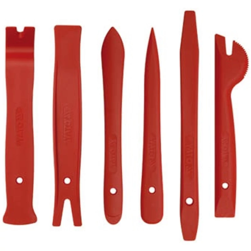 Szakértői mandzsetta bútor és autó rácsok szétbontására. A készlet hat elemet tartalmaz, amelyek lehetővé teszik bármilyen autó belső kárpitjának gyors szétszedését. A készlet elemei edzett nylonból készülnek. Speciális profiljaik lehetővé teszik karok használatát a kárpit mandzsetták szétszedésekor. A készlet nagy előnye, hogy nem okoznak karcolásokat a kárpiton és a lakkozott elemeken. Ez nagy hatással van az autó megfelelő esztétikájának megőrzésére. Használati figyelmeztetések: Figyelem! Mindig használjon személyes védőfelszerelést munka közben.
