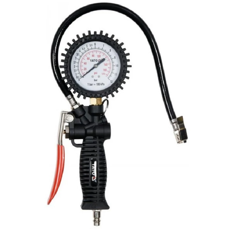 Szakmai fúvóka nyomásmérővel. Adapterek segítségével (nem tartalmazza) pontonokat, matracokat, labdákat is felfújhat. • csúszásmentes fogantyú • 44 cm hosszú tömlő, fém szeleppel a végén • max. működési nyomás: 0,8 MPa • szabványos csatlakozás A készülék nem használható motoros járművek gumiabroncsainak felfújására. Használati figyelmeztetések: A készülék nem használható motorjárművek gumiabroncsaihoz