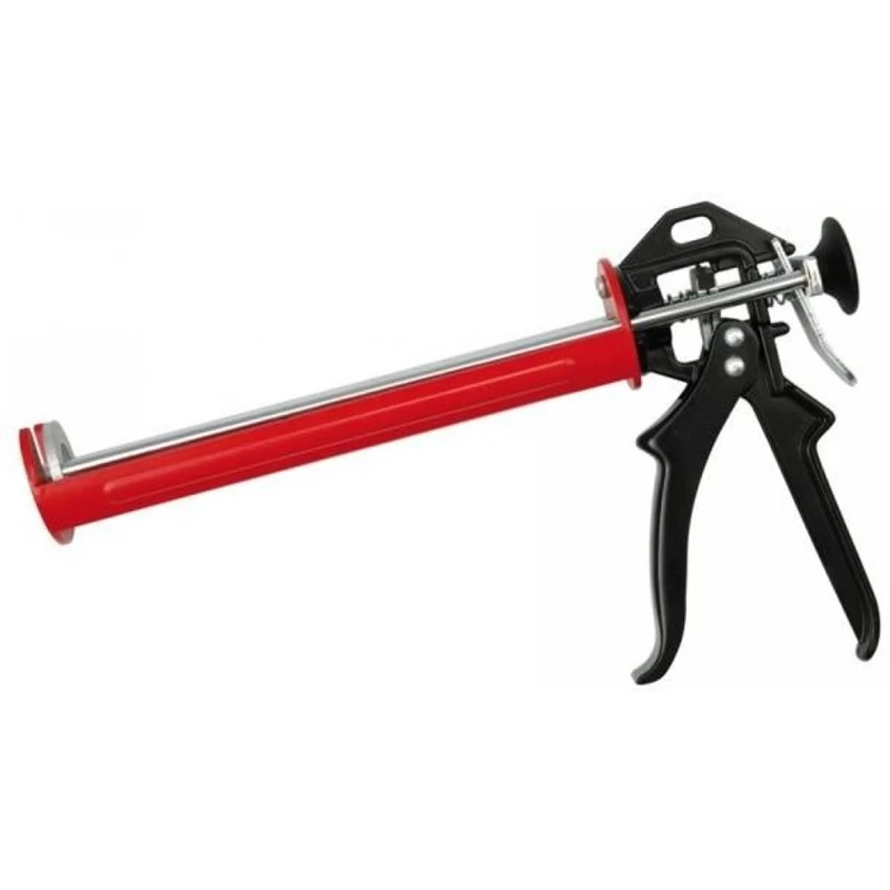 Sűrű anyagok préselője. Könnyű, acéllemezből készült, lakkozott. A kényelmes, profilált, ergonomikus alumínium fogantyú lehetővé teszi a sűrű anyagok, pl. ragasztók, tömítőanyagok, kenőanyagok, stb. hatékony felvitelét a tipikus 300 ml-es tartályokból. Az erősített szerkezet / dupla dugattyús kezelés / növeli a nyomóerőt és a felvitel hatékonyságát, különösen fontos, amikor sűrű, ragadós anyagokat préselünk, vagy alacsony hőmérsékleten dolgozunk / a keményedő anyagokat nehezen lehet kipréselni, és gyakran okozzák a gyenge préselők tönkremenetelét /. A precíz, hatékony sűrű anyagok /pl. szilikon/ kipréseléséhez a tipikus 300ml-es tartályokból. Használati figyelmeztetések: Figyelem! Mindig használjon személyes védőfelszerelést munka közben.