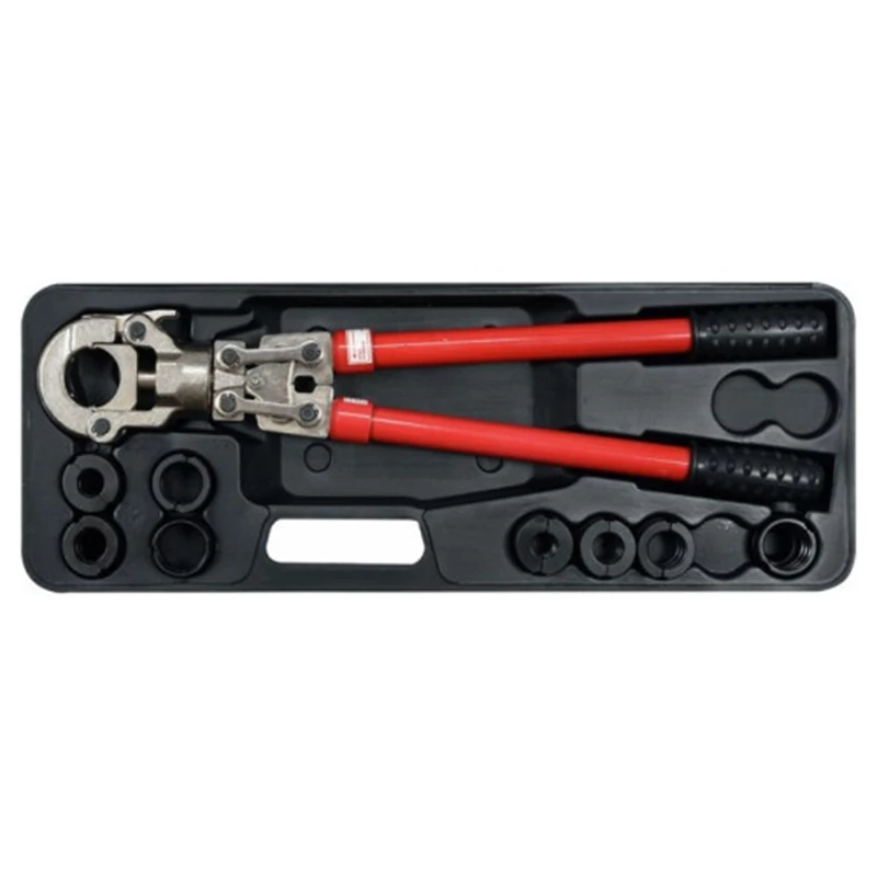 Kézi hidraulikus présgép PEX-AL-PEX, PERT-AL-PERT csövek illesztékeinek préselésére 8 db présforma készlettel. A présgép hidraulikus hengerrel van felszerelve, amely lehetővé teszi az illesztékek pontos és szoros préselését 60 kN erővel. A 360°-ban forgatható fej lehetővé teszi a nehezen hozzáférhető helyeken való munkavégzést. A teleszkópos fogantyúk kinyújthatók 57 cm-ről 80 cm-re, így csökkentve az illeszték préseléséhez szükséges erőt. A gyorsformáváltó rendszer lehetővé teszi a présformák könnyű cseréjét szükség szerint. A présgép a következő csatlakozók készletével van felszerelve: U típus: 16 mm / 20 mm / 25 mm / 32 mm. TH típus: 16 mm / 20 mm / 26 mm / 32 mm Ez lehetővé teszi a legnépszerűbb csatlakozórendszerekkel való munkavégzést. Alkalmazás:A présgép PEX-AL-PEX vagy PERT-AL-PERT csövek illesztékeinek préselésére lett kifejlesztve: U - 16 mm / 20 mm / 25 mm / 32 mm TH - 16 mm / 20 mm / 26 mm / 32 mm A csomag tartalma: présgép U-típusú matriz: 16 mm / 20 mm / 25 mm / 32 mm TH-típusú matriz: 16 mm / 20 mm / 26 mm / 32 mm tárolódoboz Figyelmeztetés használatkor: A kéziszerszámok használata veszélyes lehet! Mindig használjon személyes védőfelszerelést munka közben. Csak megfelelő, sérülésmentes eszközöket használjon. Válassza ki a szerszám típusát és méretét a tervezett alkalmazásnak megfelelően. Ne terhelje túl a szerszámokat. Tartsa a szerszámokat távol a gyerekektől. Gondosan használja a szerszámokat.