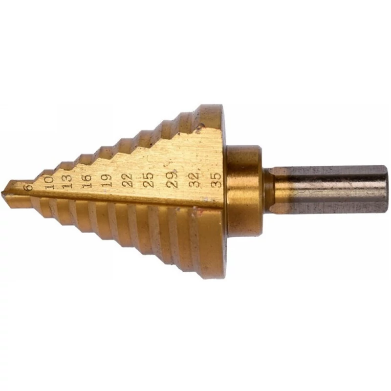 Yato YT-44739 fokozatos fúró. Kiváló minőségű rozsdamentes acél, szerkezeti és hidegen hengerelt acél, színes fémek, acéllemezek, műanyagok fúrására tervezve. • Magas sebességű HSS 4241 acélból készült, titán-nitrittel nitrált, ami megnöveli a fúrók élettartamát • A fúrt lyuk szélei tiszták és peremmentesek maradnak • automatikus központosítás kerek és csúszós felületeken • Gyors hőelvezetés kemény anyagok fúrásakor 3 lapos felülettel rendelkezik, lehetővé téve a maximális nyomaték átvitelét Használati figyelmeztetések: Figyelem! Mindig használjon személyes védőfelszerelést munka közben.