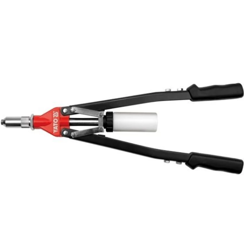 Karomfejző szerszám 3.2 -6.4 mm szegecfejek: 2.4; 3.2; 4.0; 4.8 mm, amelyek lehetővé teszik a tartós összeköttetések létrehozását a szegecsek lyukba történő rögzítésével a szerszám állkapcsának meghúzásával, tartós CrMo acélból készült, alumínium test, PVC-vel bevont acél fogantyú, állkapcsok száma: 3 Használati figyelmeztetések: Figyelem! Mindig használjon személyes védőfelszerelést munka közben.