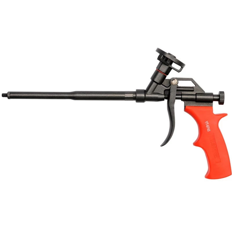 Pisztoly, mely poliuretán habok alkalmazására lett tervezve. Magas minőség - köszönhetően a megfelelő, magas minőségű anyagok használatának, mint a rozsdamentes acél, alumínium és sárgaréz. A habok agresszív hatása és a korrózió miatt a leginkább szennyeződésnek és károsodásnak kitett elemeket további PTFE bevonattal védjük. Alkalmazási cél: A pisztoly megkönnyíti az ilyen munkákat, mint a tömítés, ablakok és ajtók beépítése, szigetelési rések kitöltése, válaszfalak tömítése és szigetelése, valamint falak és tetők szigetelése. Használat módja Használati cél: 1. Munka megkezdése - Rázza meg erőteljesen a hab tartályt, körülbelül 15 másodpercig. - Csavarja be a beállító csavart, amely a pisztoly hátulján található, ameddig csak lehet, hogy teljesen blokkolja a ravaszkar mozgását. - Távolítsa el a fedőt a hab tartályról, majd csavarja be a tartályt a pisztoly anyába, amíg érezhető ellenállásig. - Ezután tekerje ki a beállító csavart, amely a pisztoly hátulján található, balra forgatva, amíg a beállító csavar menetes része meg nem jelenik - a beállító csavar menetes részét a pisztoly testébe kell csavarni. - Nyomja meg a ravasz kart és töltse fel a pisztolyt habbal. - A pisztoly használatra kész. - A hab akkor jön ki, amikor a ravasz kart megnyomják. - A ravaszkar nyomásának elengedése leállítja a hab áramlását. - Az installációs hab áramlásának mennyiségét a beállító csavarral lehet szabályozni. 22. Teendők a munka befejezése után Tekerje be teljesen a beállító csavart, hogy blokkolja a ravaszkar mozgását. Tekerje be teljesen a beállító csavart, hogy blokkolja a ravaszkar mozgását. Ajánlott, hogy ne csavarja le a hab tartályt a pisztolyról. Ügyeljen arra, hogy mindig legyen a pisztolyra csavarva egy tartály, legalább részben töltve, ez segít a habot nyomás alatt tartani a pisztoly belsejében. Ez megakadályozza a hab kiszáradását a pisztolyban. Ha a pisztoly használatának szünete hosszabb mint egy hónap, tisztítsa meg a pisztolyt habtisztítóval. Ne hagyja a habot kiszáradni a pisztolyban. A kiszáradt habot csak mechanikusan lehet eltávolítani. A kiszáradt hab bennhagyása a pisztolyban visszafordíthatatlan elzáródást okoz. 3. A pisztoly újbóli használata Rázza meg erőteljesen a pisztolyt a tartállyal együtt, körülbelül 15 másodpercig. Vágja le az elszáradt hab csúcsát egy éles késsel. Tekerje ki a beállító csavart balra és engedjen ki annyi habot, hogy az áramlás egyenletes legyen. Ezek után a pisztoly használatra kész. 4. Tartály cseréje Ha a hab már nem jön ki a tartályból, cserélje le újra. Hogy lássa, a tartály teljesen szabad-e, irányítsa a fúvókát a hulladék tartály felé és nyomja meg a ravaszt, amíg a pisztoly fúvókája teljesen szabad nem lesz. Azonnal telepítsen új tartályt, a pisztoly tisztítása nélkül, és járjon el az 1. pont szerint. 55. A pisztoly tisztítása Csavarja le a tartályt a pisztolyról. Tegye a spriccelőfejet a tisztítószer tartályra és tisztítsa meg a friss hab maradványait a pisztolyon. Távolítsa el a spriccelőfejet és csavarja be a tisztítószer tartályt a pisztolyba. Ugyanúgy járjon el, mint a hab tartálynál (1. pont). Töltse fel a pisztolyt tisztítószerrel és hagyja állni körülbelül 10 percig. Nyomja meg újra a ravaszt és tisztítsa meg a pisztoly belsejét friss tisztítóval. Csavarja le a tisztítószer tartályt. Egy ruhával távolítsa el a tisztítószer maradványait a tartály és a pisztoly csatlakozásáról, és kenje be vékony rétegű vazelinrel. Ne tisztítsa a pisztolyt maró anyagokkal. A pisztoly folyamatos használata esetén tisztítsa meg a pisztolyt, ahogy fent leírtuk, minden 2 - 3 hónapban. Használati figyelmeztetések: Figyelem! Mindig használjon személyes védőfelszerelést a munka során.