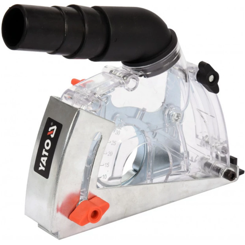 Porhanyag elszívó borítás 115 mm és 125 mm-es csiszológépekhez szabványos M14 menettel. max. vágásmélység: 32 mm (állítható) állítható szorítóflancs átmérő por elszívó gyűrű csökkentéssel 28 mm, 32 mm és 36 mm-hez átlátszó ház