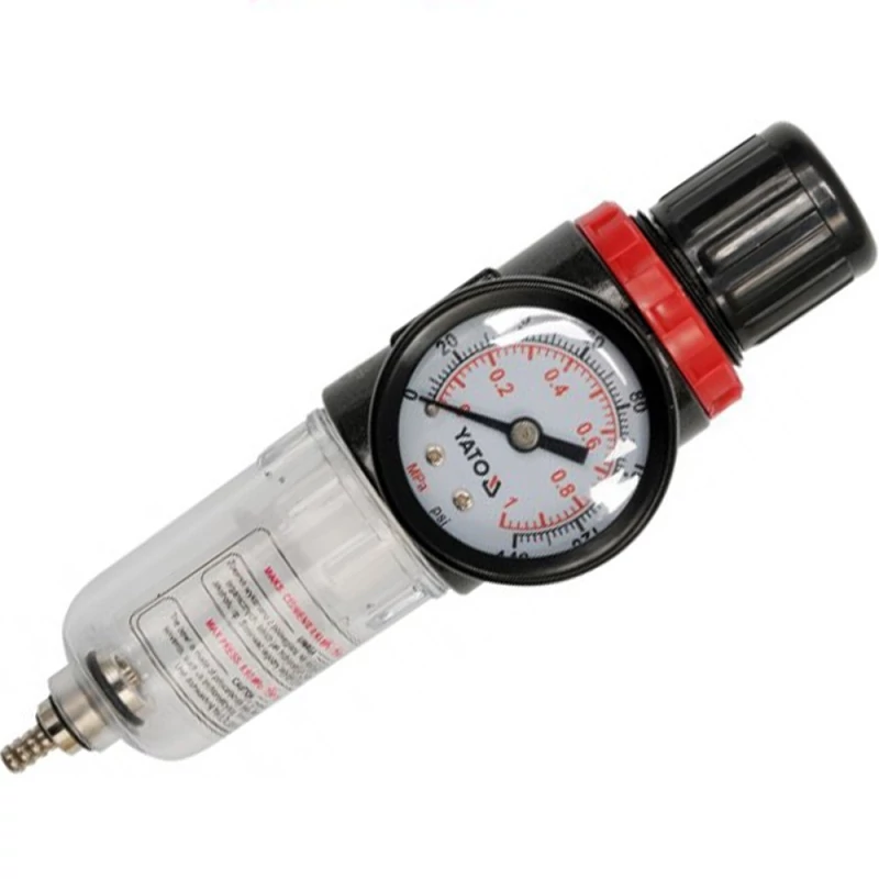 A YATO Szűrő nyomásszabályzóval 1/4 col a sűrített levegő tisztítására és a munkanyomás beállítására szolgál. Eltávolítja a levegőből a szennyeződéseket és a párát, miközben stabil kimeneti nyomást biztosít. 1/4”-os csatlakozású, műhelyi felhasználásra alkalmas.