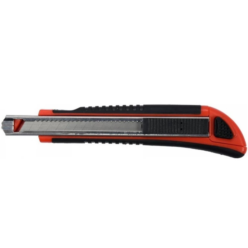9mm-es többélű kés. kés minőségi ABS-ből készült testtel ráadásul csúszásgátló TPR bevonattal van ellátva, ezért biztos fogást és munkakényelmet biztosít fém útmutató automata pengével cserélhető rendszerrel a vágókésnek három pengéje van SK5 acélból, amelyek nagyon jó vágási paramétereket és hosszú élettartamot biztosítanak Használati figyelmeztetések: A kézi szerszámok használata veszélyes lehet! Mindig viseljen személyes védőfelszerelést munka közben. Csak megfelelő, sérülésmentes szerszámokat használjon. Válassza ki a szerszám típusát és méretét a tervezett felhasználásnak megfelelően. Ne terhelje túl a szerszámokat. Tartsa a szerszámokat távol a gyermekektől. Használja megfelelően a szerszámokat.