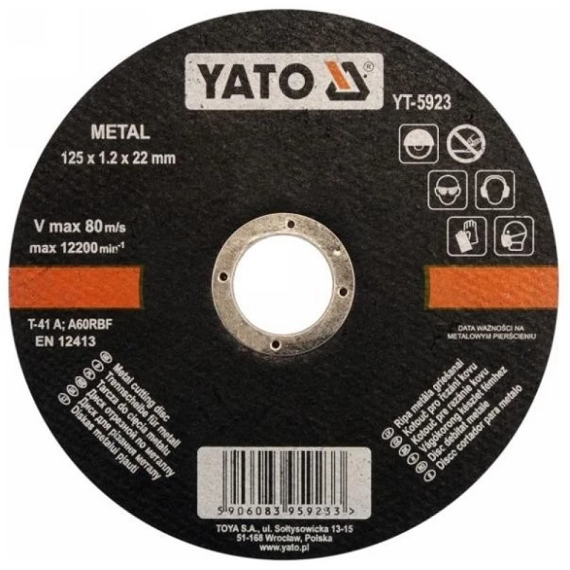 Fémvágó korong a YATO márkától, kiváló minőségű, megfelelő keménységű és szemcseméretű csiszolóanyagból készült. a korong gyantakötésű, üvegszállal erősített (RBF szimbólum) Ipari és kézműves szakemberek számára készült. Ipari és kézműves szakemberek számára készült.