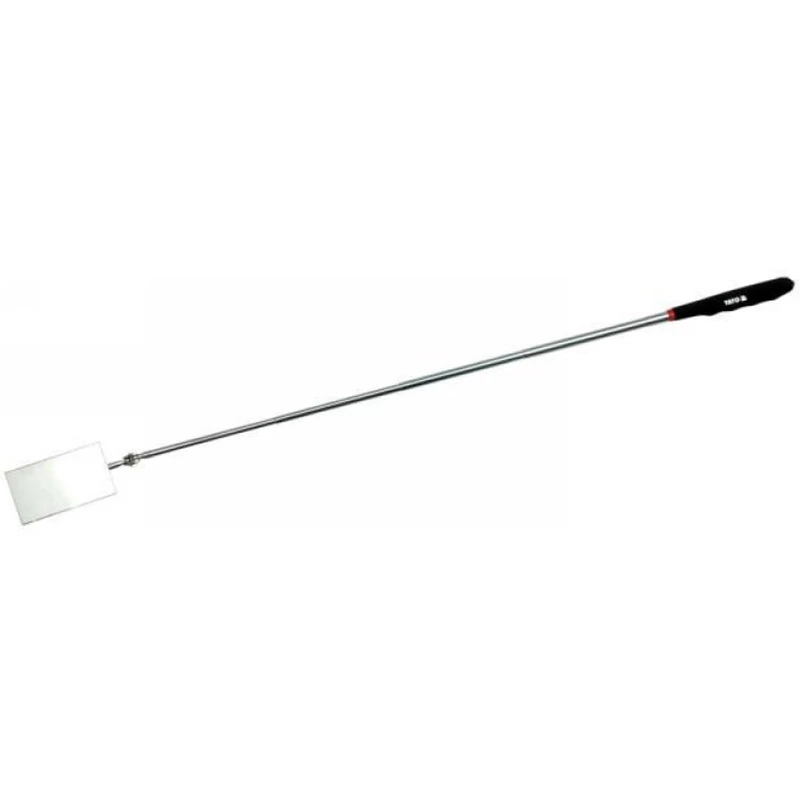 A Yato vizsgáló tükör segítség minden mechanikai és autóüzemben. Lehetővé teszi a hozzáférhetetlen, rejtett autó szerkezeti elemek, gépek, eszközök stb. megtekintését. A tükör egy teleszkópos karra van szerelve, ami 0,6 mm vastag acéllemezből készült. A kar korrozó elleni bevonattal van védve, ergonomikus, puha műanyag fogantyúval rendelkezik. A teleszkópos kar hossza akár 750 mm, a tükör mérete 50 x 90 mm.