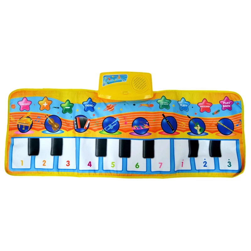 Komponáld meg első slágereidet ezen a szuper szórakoztató zenélő szőnyegen! A szőnyegen zongorázhatsz, vagy bármilyen zenét megkomponálhatsz! A szőnyeg nyomásérzékeny, a billentyűk 1 oktávot fednek le, a kompozíciódat különféle effektekkel, más-más hangszereléssel teheted még egyedibbé! A játék hangereje állítható.