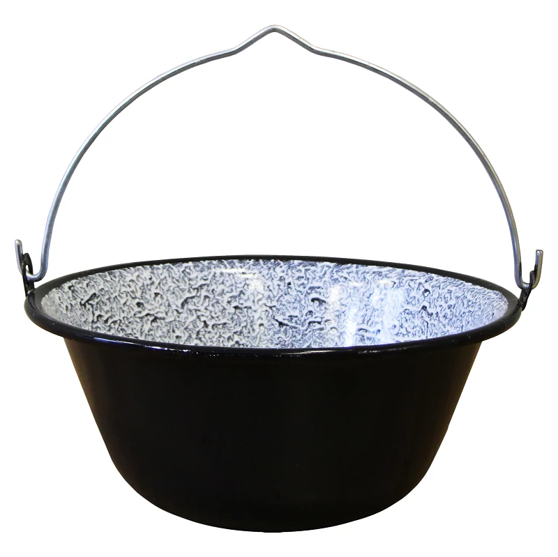 8 literes bogrács, zománcozott galvanizált fém fogantyúval. Alkalmas ételek elkészítésére a természetben, a vízpart mellett vagy otthoni családi összejöveteleknél.