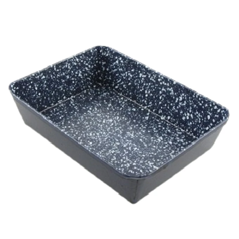 - - A szögletes tepsi kívül-belül zománc bevonatos, minden tűzhelyben használható
